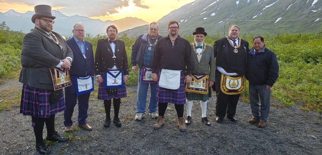 The Highland Masonic Weekend was attended by a small, but vibrant group of Masons. We enjoyed good fellowship between the brethren and their families. Our Master Mason Degree in the Chugach Mountains was an excellent performance, amid a healthy swarm of mosquitoes. Many thanks to all who made the trip to Valdez to share in this exciting weekend!